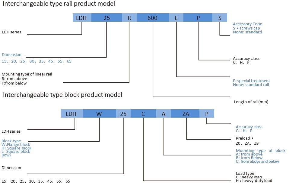 LDH Series, Size 25mm carriage,  Square type, Heavy Duty Load, mouniting from above & Below, preload ZO, accuracy C